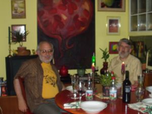 Kathy's son Tim and his family lives in San Diego. Although we are close at heart (Tim and Kathy have always been true pals) all of our busy schedules keep our visits less frequent than we wish. Tim supervises a purchasing team for a chain of natural food stores. His plan to finally come to see our 'new' condo with his son Dylan, was preceeded by a quick visit to Carlsbad, CA. We went to visit Daniel, our friend harpsichordist (who performed our wedding ceremony) and who is in progress of building our harpsichord. (More about that later.) Tim met us for dinner, and it was a happy reunion.