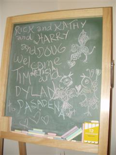 Everyone appreciated babysitter Leticia's help and comraderie with Dylan. Rick and Kathy also anticipated that our bustling household full of visitors might need some help, Doug was here on his Caltech visit, and friend Harry was here too, from San Francisco-- so live music and good times were in full swing. It allowed Tim to do this: