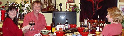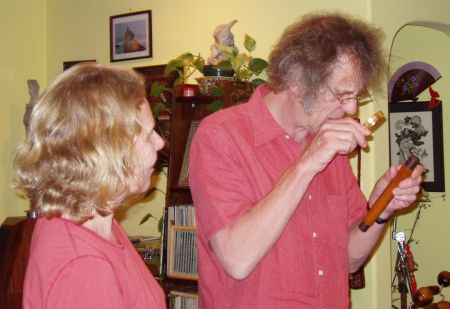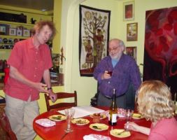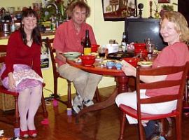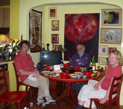 Kathy enjoyed meeting Tony for the first time, and preparing a "musical meal" for everyone: shitake mushrooms, accompanied by her new inventions: peacakes (Risa's favorite) homemade ricecakes, kasha cakes, and Maltese minestra.