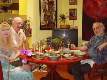 There is no one who can create a celebration of friends like our friend Harry Bower, from San Francisco.(Remember he created our wedding concert banquet!) Here for a week,to see us before we left, and to play trios with Rick and Doug, we had wonderful meals, music, and talks.