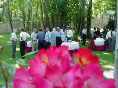 The beautiful gardens at IPM are the setting for gatherings of scholars. You can see a couple of women participants in the group, and Kathy will be there soon too. Friend mathematicians have praised the hospitality and high quality of the conferences at the Center, and there will be two of our friends from the Shanghai conference there as speakers as well, Richard Brualdi, from Wisconsin, and Brendan McKay, from Australia. There will be a two day tour to the historical sites of the city of Isfahan after the conference.