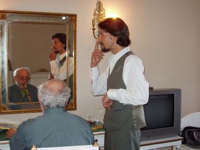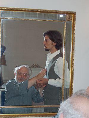 It was then that Majid Rahnema, the fine ney player came to visit, to give Rick a flute, and a lesson in our hotel room, pictured here.
