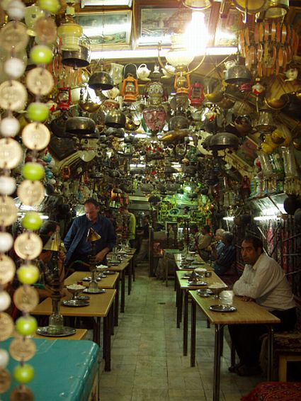 Now, the only difficult thing about this trip was that we had not yet gotten to the bazaar, and time was running out... It is a huge market, comprising a maze of artist's workshops and galleries, most streets organized by crafts. We did buy a rug and some miniatures, but we could have spent hours wandering these interesting shops. Hope to come back someday...