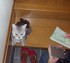 But look, as soon as we arrived in Nara, we were getting into trouble! What, you might ask, is that??? Well, it is one of these! Nara is overrun with deer. Along with our host, and kind organizer of the conference in Kyoto, Shinji Kuriki (on Kathy's left, and holding the umbrella) they greeted us at the station in the rain. You can just see Shinji's lovely wife, Junko, who also accompanied us on our adventures in Nara, which is their home city. Here she is with Yuki, just after we arrived. What did they know that we didn't know? We
