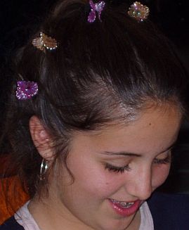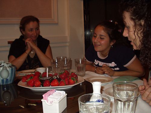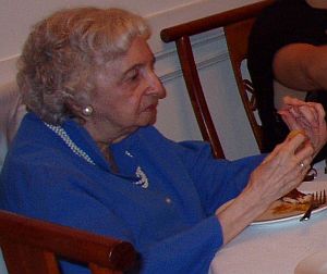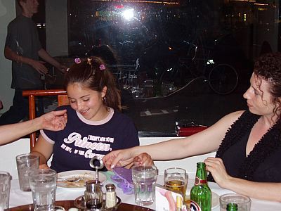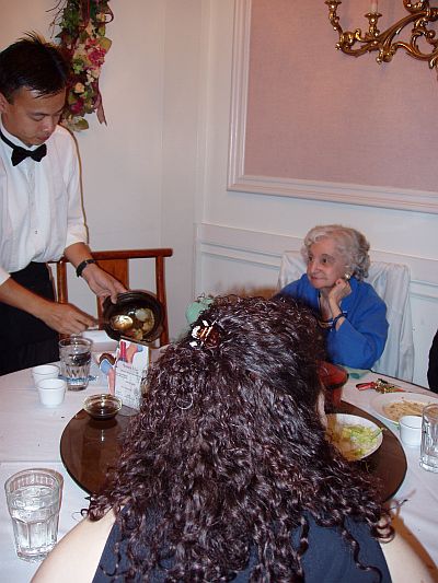 at a restaurant near Colleen's spa in Five Points Center. You can see her happy grandma (Kathy's mom) here, and Colleen, (Kathy's daughter's) beautiful curls.