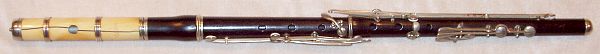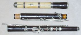 (6) Bore and sound. Many flute manufacturers have claimed "improved" bores over the history of the flute. I do not know exactly how the bore was modified by Schwedler and Kruspe, but whatever the changes in bore and hole geometry and location, I do detect a significant difference in the sound made by their flutes, and instruments modeled on their ideas, compared with other late 19th century simple system flutes in the Meyer style or the Ziegler style. The Schwedler sound is full and relatively warm. The low register, while still mellow, is more penetrating. There is perhaps some loss of color and brightness in the second and third octaves compared with the best of other simple system flutes, but the tone in that range can be very attractive on its own right.