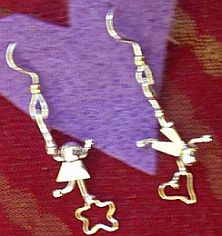 Light and playful. You can request any combination...of girls, boys, and choose what they hold. $40. pair. All sterling silver with gold filled heart and star.