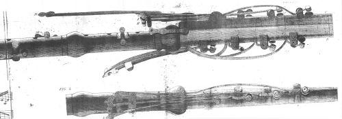The G-foot flute was announced by Georg Bayr in 1813. Other sources say an inventor Trexler collaborated with Koch in 1815 to produce a 17-key panaulon. But a design for a G-foot flute already appears in a publication Saggio per costruire, e suonare un flauto traverso enarmonico the ha I suoni bassi del violino by Giovanni Batista Orazi, in Rome, in 1797! The depicted instrument has a footjoint doubled back on itself and pewter plug keys throughout. It is, however, not clear that such a flute was actually built at that time.