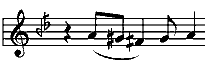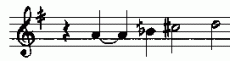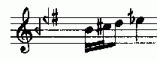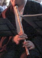 A simplified fingering chart is given below. The thumb hole is closed for all these notes and is not shown in the table. (The ney does not produce these notes in equal temperament. In particular, the notes I have labeled b', f''#, and b'' are flat to equal temperament.) The entries in a light font are fingerings that are not often used; "X" indicates a closed hole, and "O" an open one; the highest finger holes are on the left. For a complete fingering chart, go to http://www.bardoworks.it/Ney_Chart1.html . [Internet Explorer is recommended. This link freezes my version of Mozilla Firefox.] Here is the first octave.